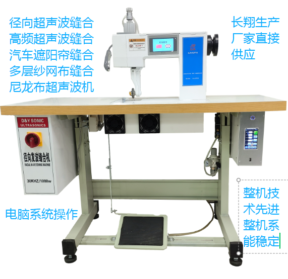 | 高频超声波缝合机:又称径向超声波缝合机,超声波封边机,超声波包边机,超声波滚焊接机等,本机是一种利用高频超声波振动进行材料焊接、切割和压花的特种工业设备。它也被称为超声波裥棉机、超声波花边缝合机或超声波滚轮机。它完全颠覆了传统的针线缝合概念,是一种、环保的“无针缝合”技术。