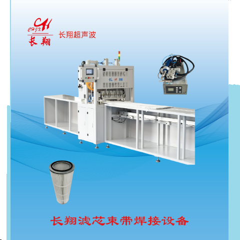 | 工业除尘滤芯超声波焊接机:又称全自动化超声波焊接机,多工位超声波焊接机,粉尘滤芯束带焊接机,除尘滤芯绑带焊接机,滤芯束带裁断焊接一体机, 核心功能
